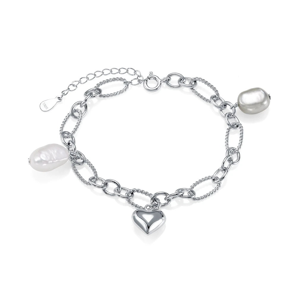 Браслет из серебра 925 пробы с барочными речными жемчужинами 8-10 мм, (7649)