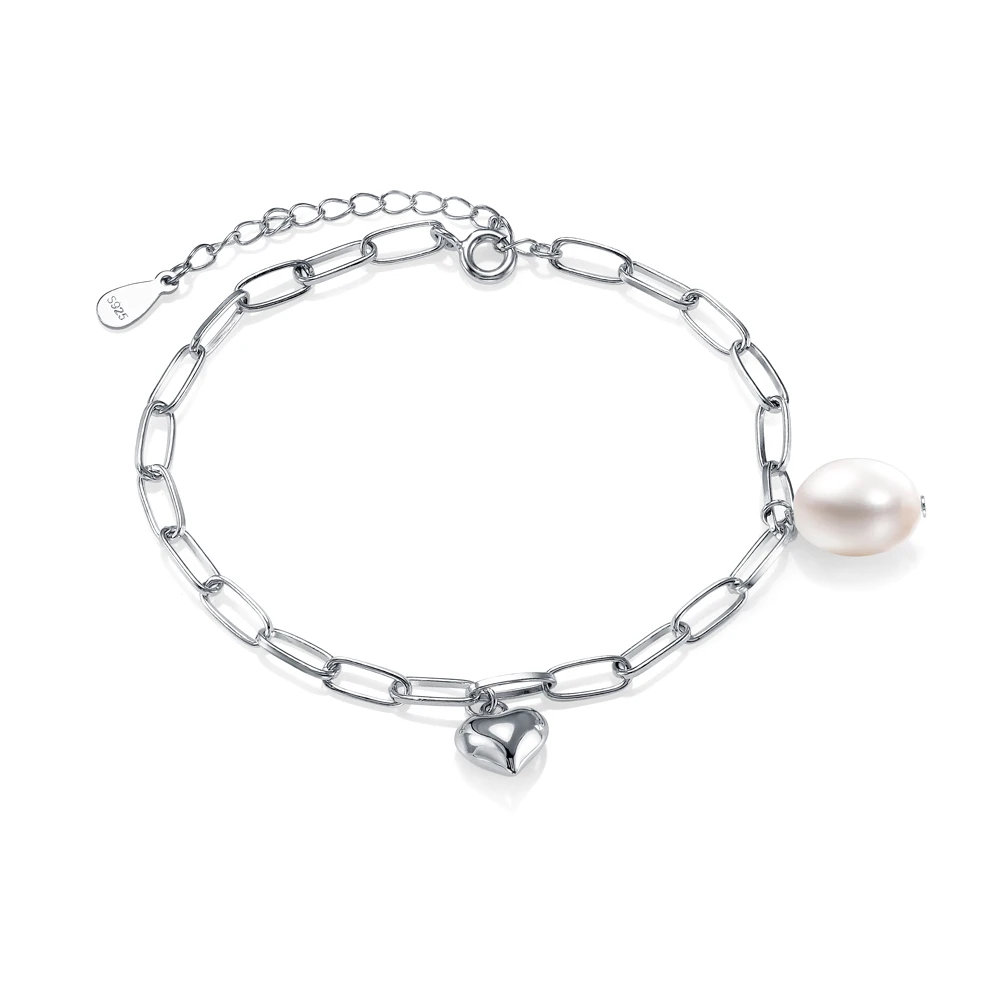 Браслет из серебра 925 пробы с белой барочной жемчужиной 8-9 мм, (7648)
