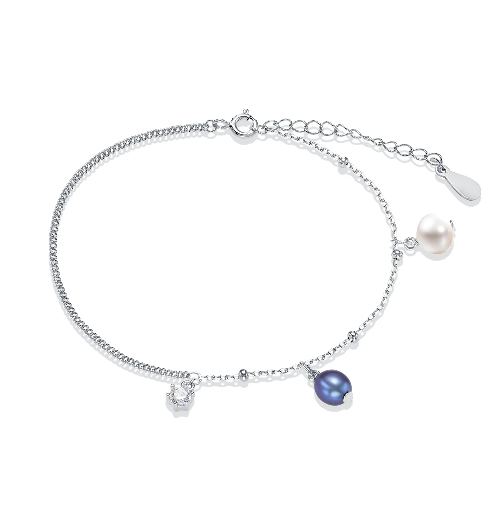 Браслет из серебра 925 пробы с белой и черной речными жемчужинами 5-6 мм, (7644)