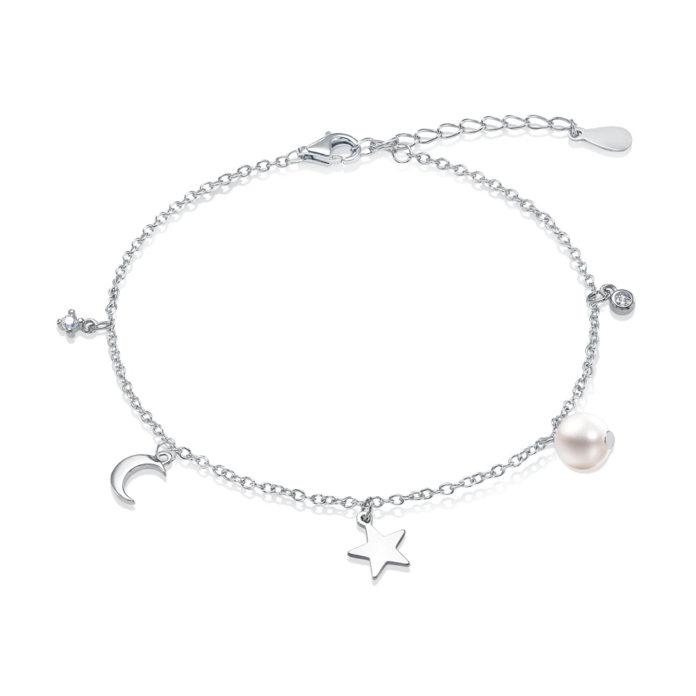 Браслет из серебра 925 пробы с белой речной жемчужиной 6-6,5 мм, (7638)
