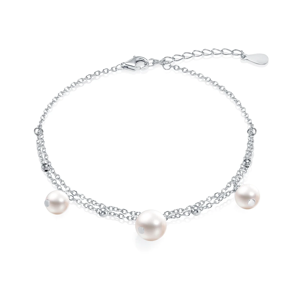 Браслет из серебра 925 пробы с белыми речными жемчужинами 6,5-8 мм, (7641)