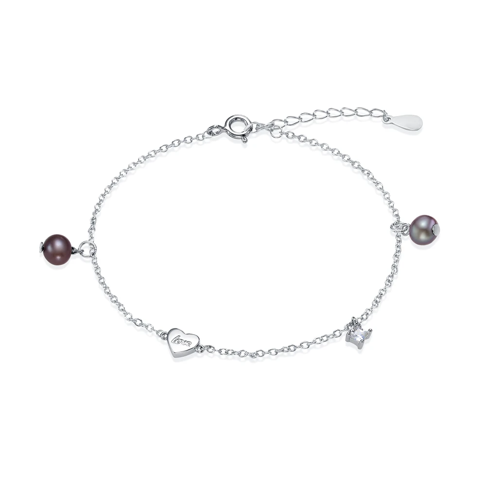 Браслет из серебра 925 пробы с черными речными жемчужинами 5-5,5 мм, (7646)