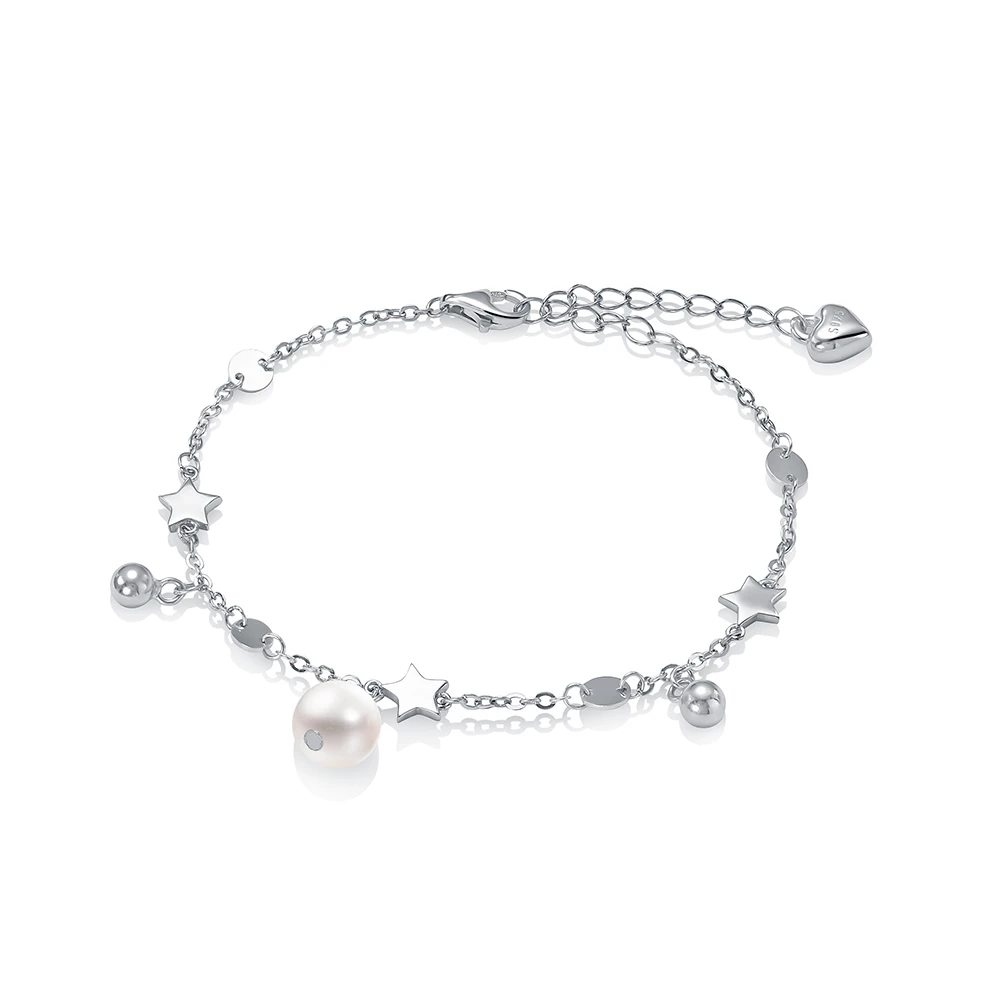 Браслет из серебра 925 пробы с белой речной жемчужиной 7-7,5 мм, (7631)