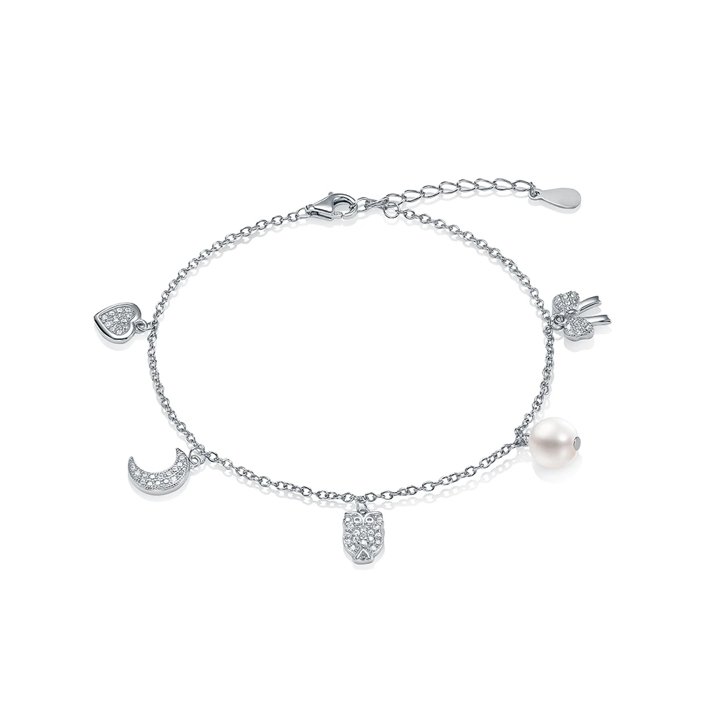 Браслет из серебра 925 пробы с белой речной жемчужиной 7-7,5 мм, (7630)