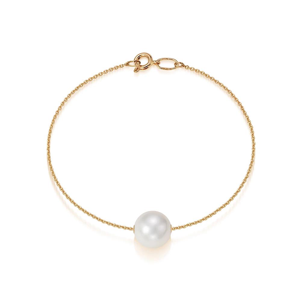 Браслет на цепочке из золота с белой Австралийской жемчужиной 11-11,5 мм, (7541)