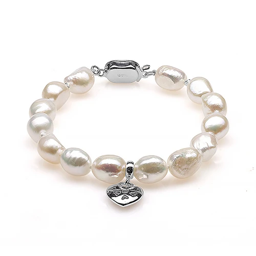 Браслет из белого барочного речного жемчуга класса АА+ с подвеской. Жемчужины 9-10 мм, (4024(3500))