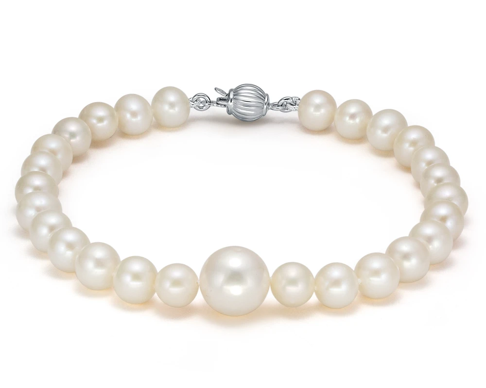 Классический браслет собран из идеально круглых жемчужин белого цвета.