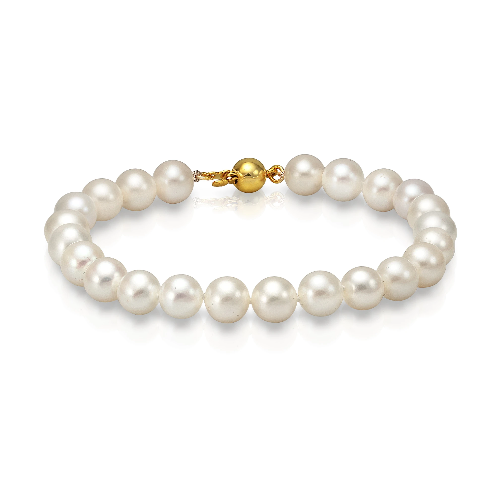 Классический браслет собран из идеально круглых жемчужин белого цвета.