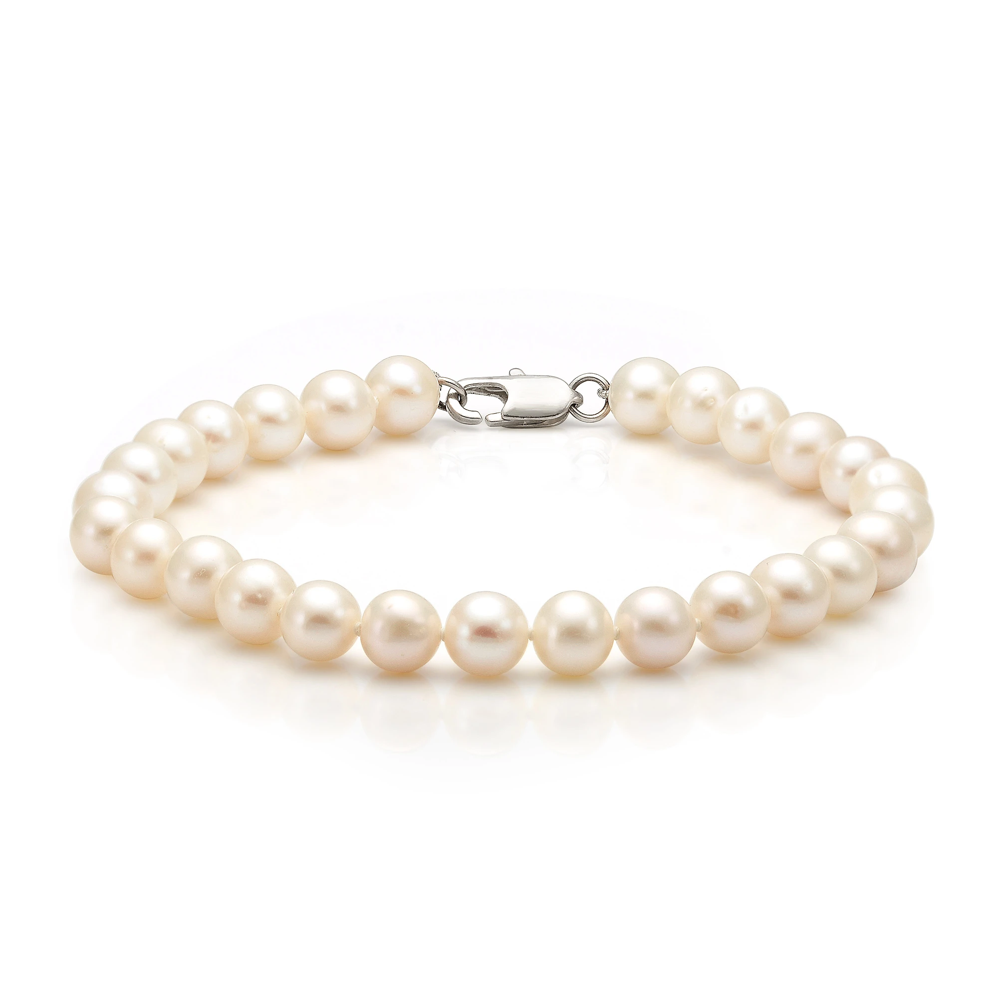 Классический браслет собран из идеально круглых жемчужин белого цвета.