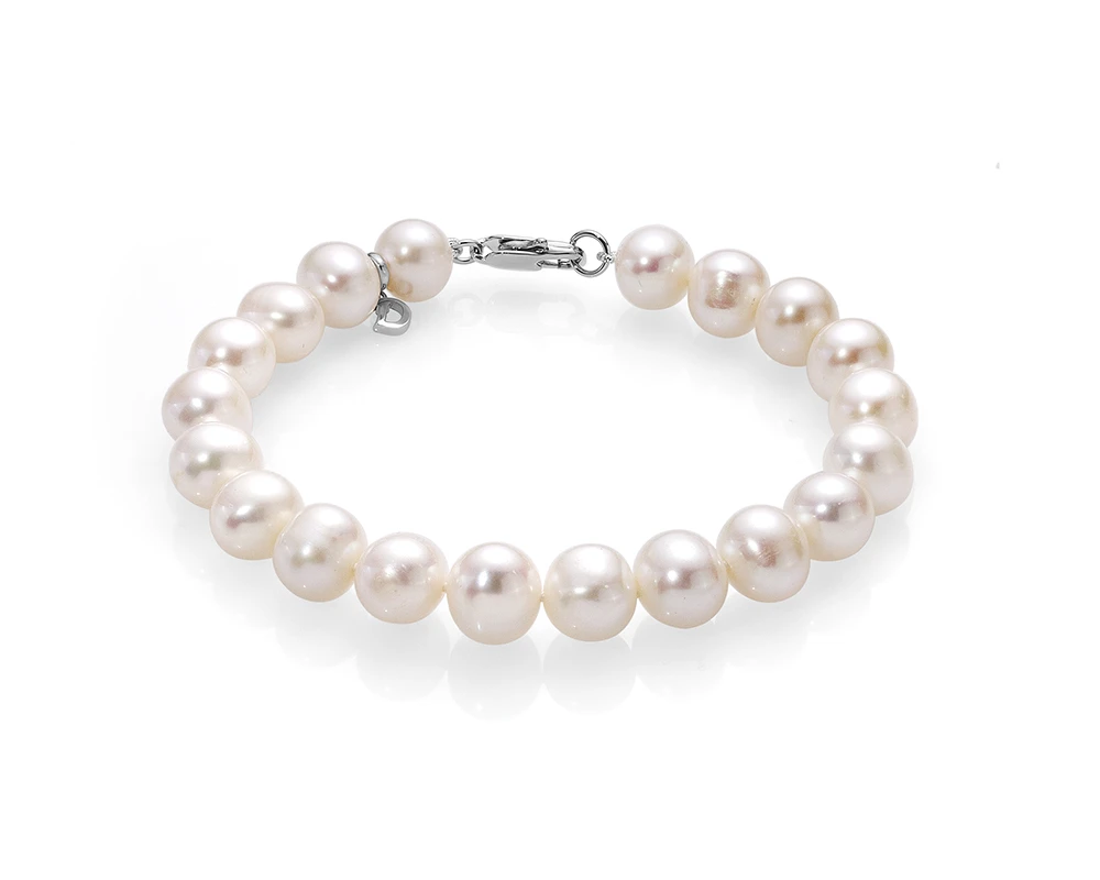 Классический браслет собран из почти круглых жемчужин белого цвета.