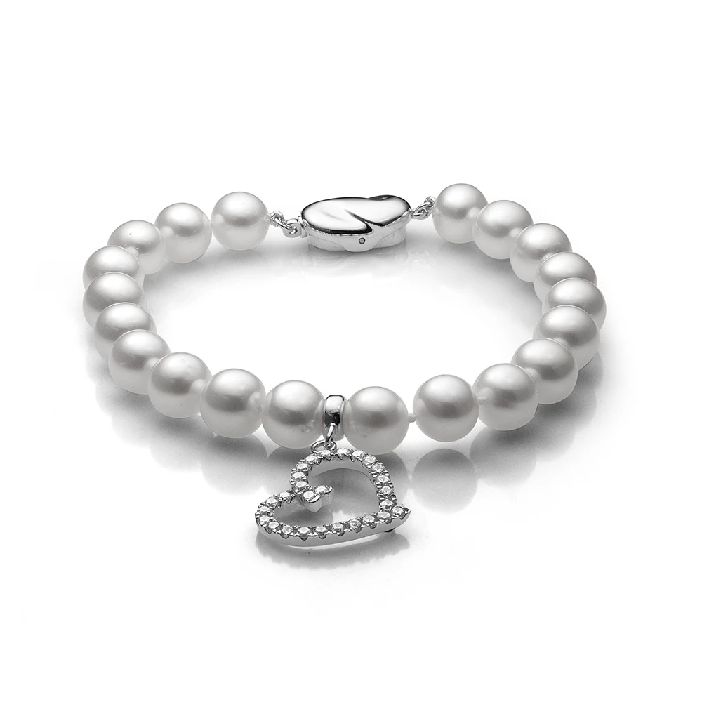 Браслет из белого круглого речного жемчуга 8,5-9,5 мм с подвеской из серебра, (4025)