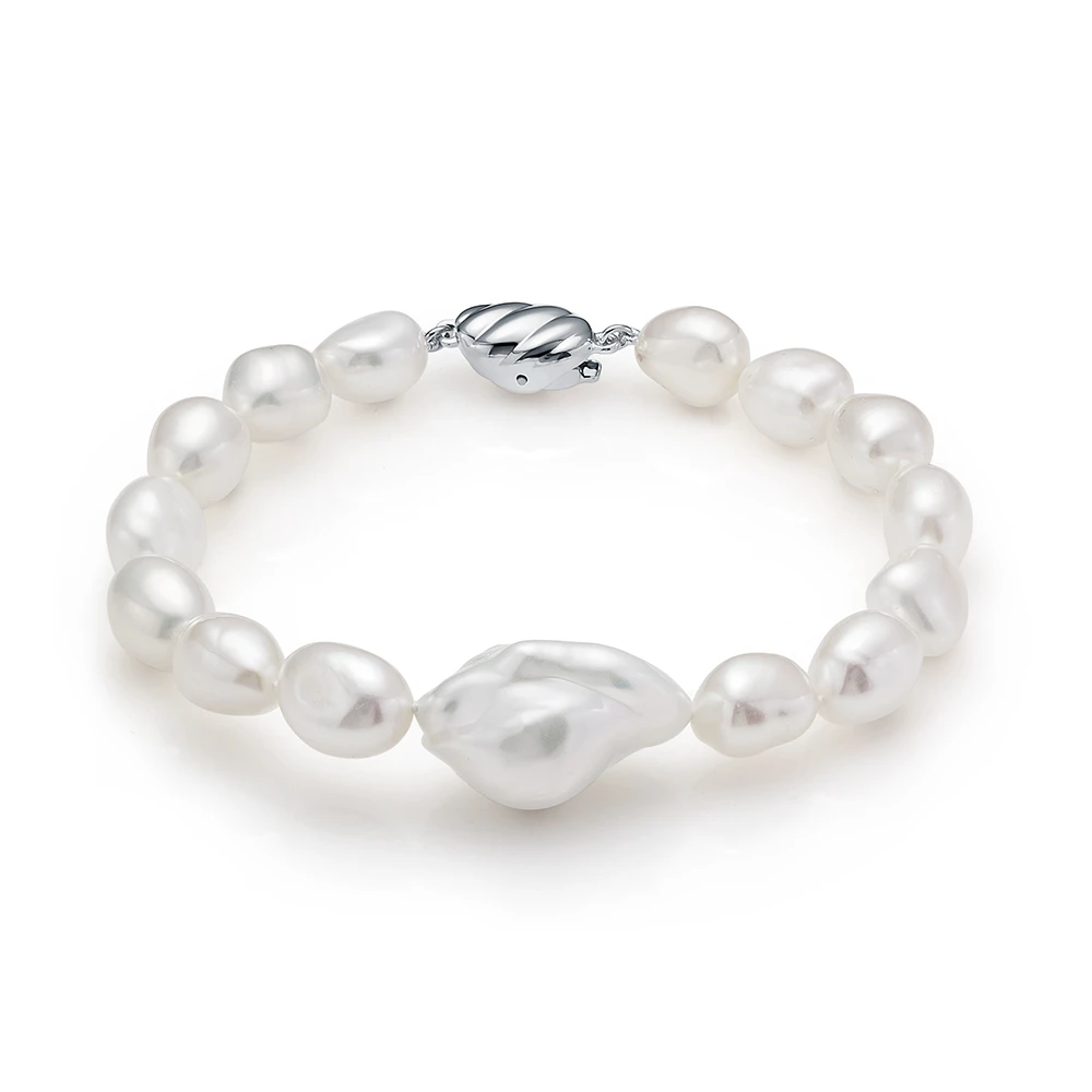 Классический браслет собран из барочных жемчужин белого цвета.