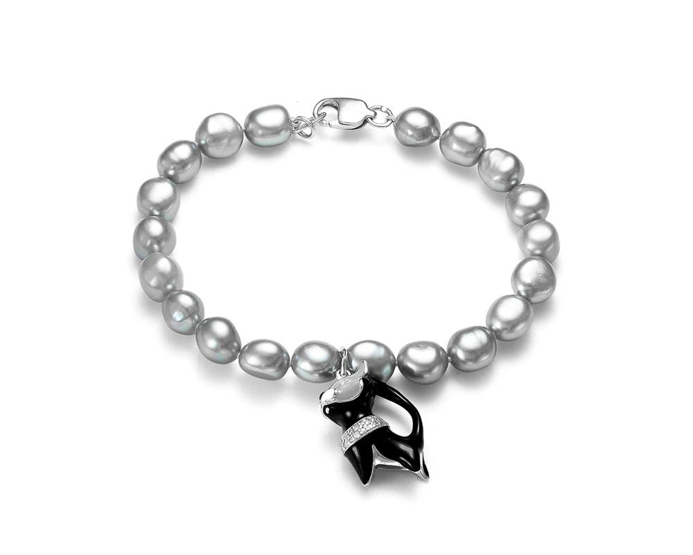 Браслет длиной 19,5 см. выполнен из барочного жемчуга, украшен подвеской из серебра с покрытием эмаль. Замок - карабин из серебра 925 пробы.