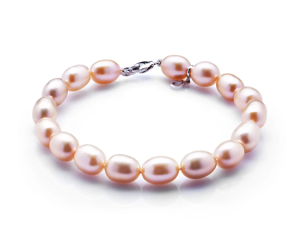 Браслет из розового рисообразного речного жемчуга. Жемчужины 7,5-8 мм, (3202(15000))