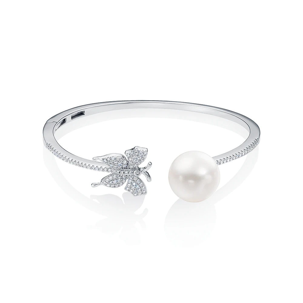 Браслет из серебра 925 пробы с белой речной жемчужиной 13-14 мм, (7736)