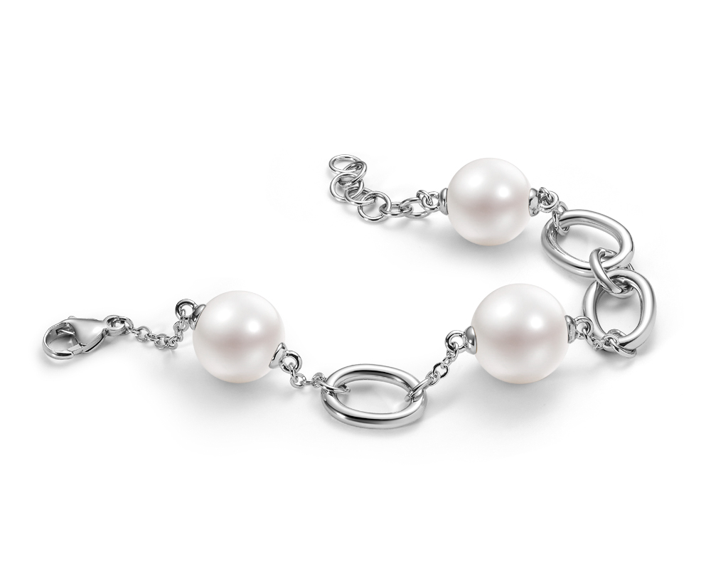 Браслет выполнен из серебра 925 пробы и украшен белыми пресноводными жемчужинами.