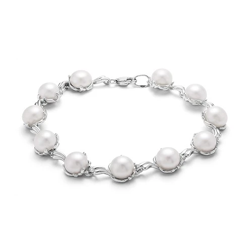 Браслет из серебра с белыми речными жемчужинами. Жемчужины 8-8,5 мм, (6029)