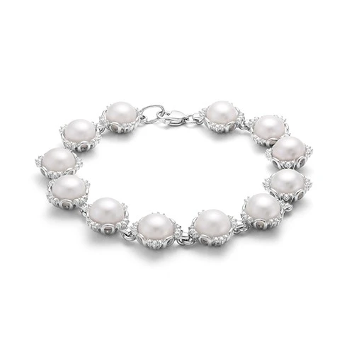 Браслет из серебра 925 пробы украшен прекрасными речными жемчужинами.