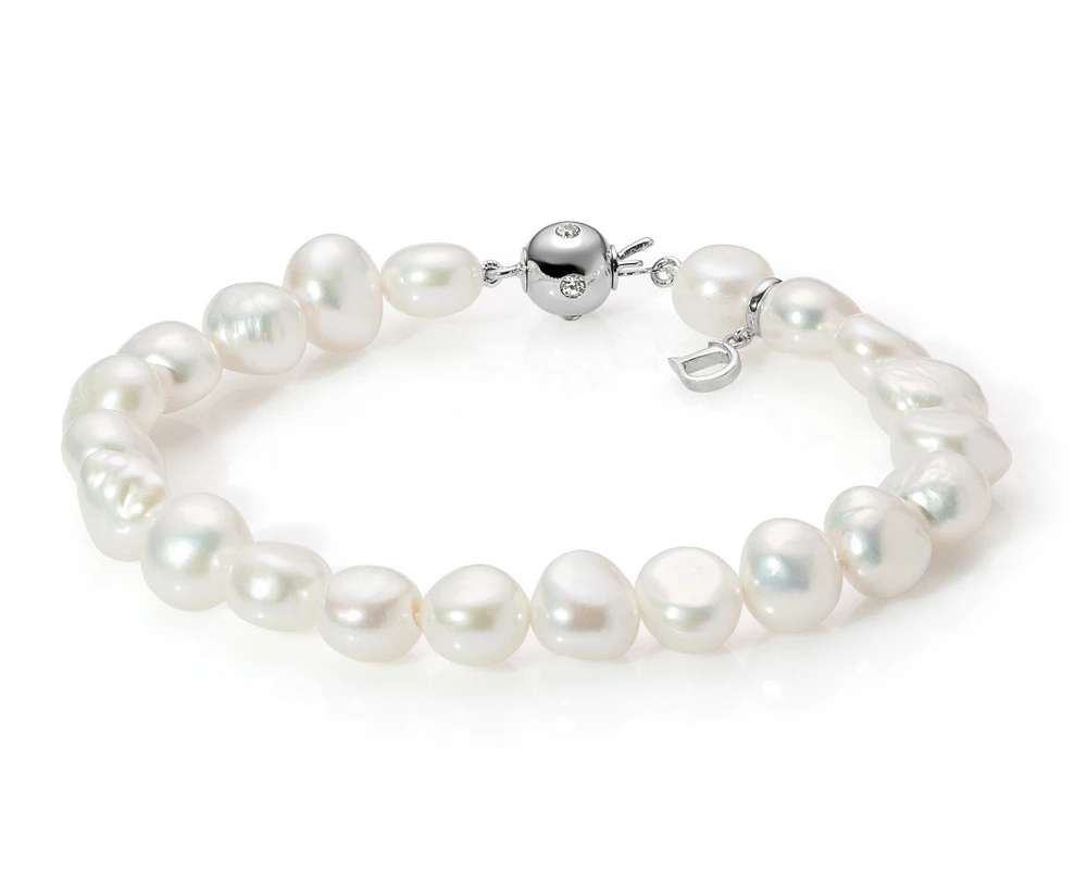 Браслет из белого барочного речного жемчуга класса ААА. Жемчужины 9-10 мм, (6243(9500))