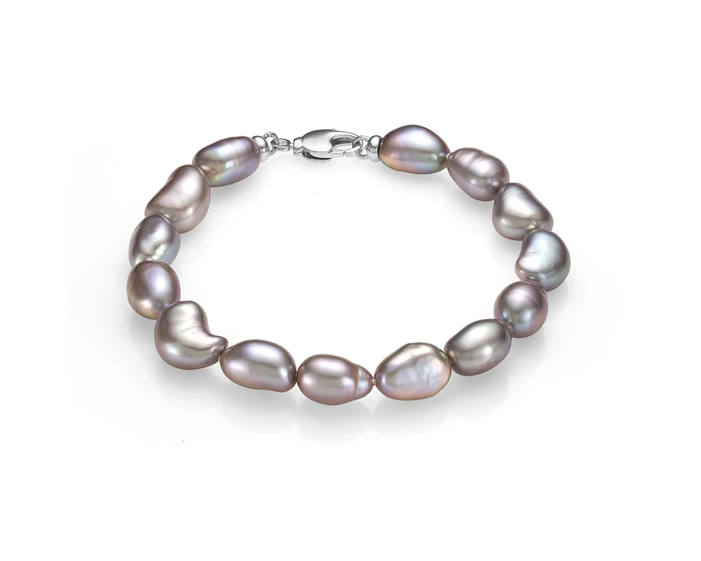 Классический браслет собран из барочных жемчужин серебристого цвета.