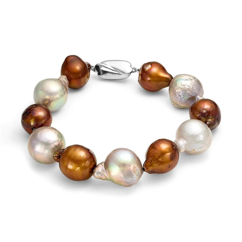 Браслет "микс" из барочного речного жемчуга. Жемчужины 13-17 мм, (6211)
