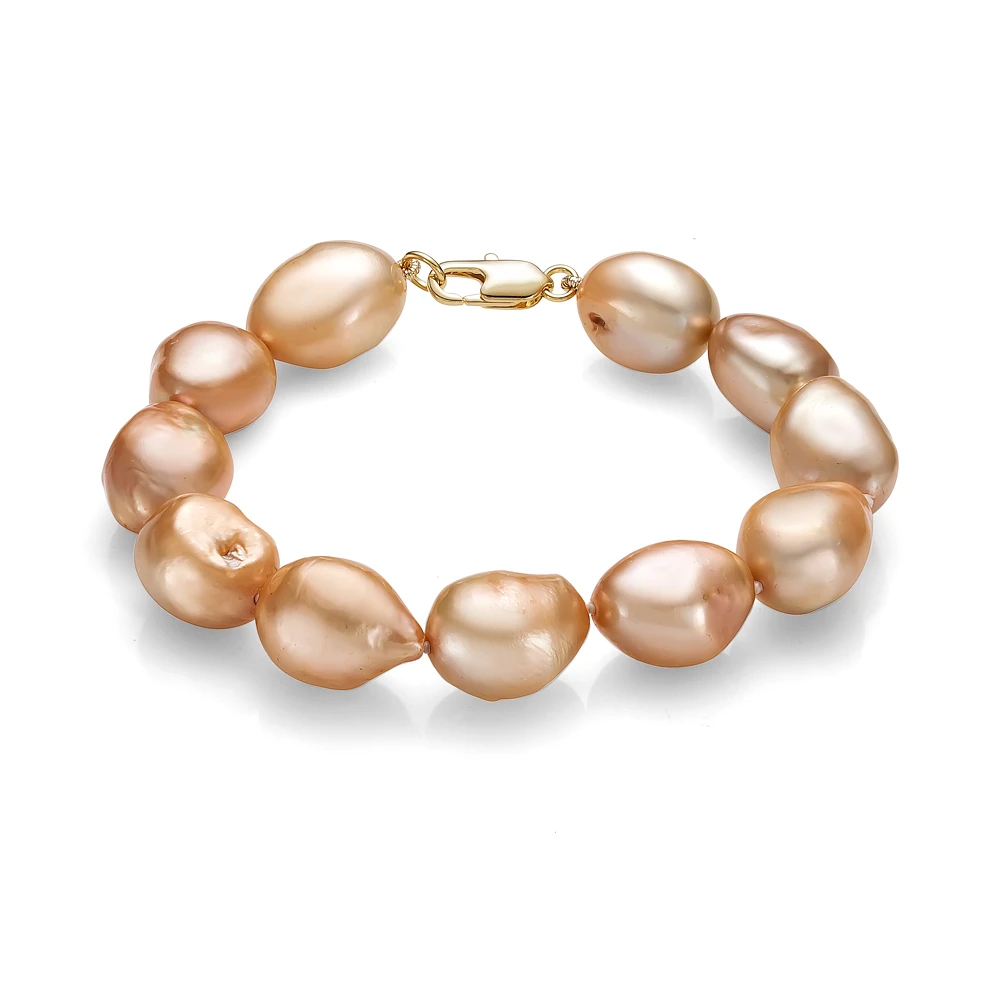 Браслет из золотистого барочного речного жемчуга. Жемчужины 11-12 мм, (7669(6500))