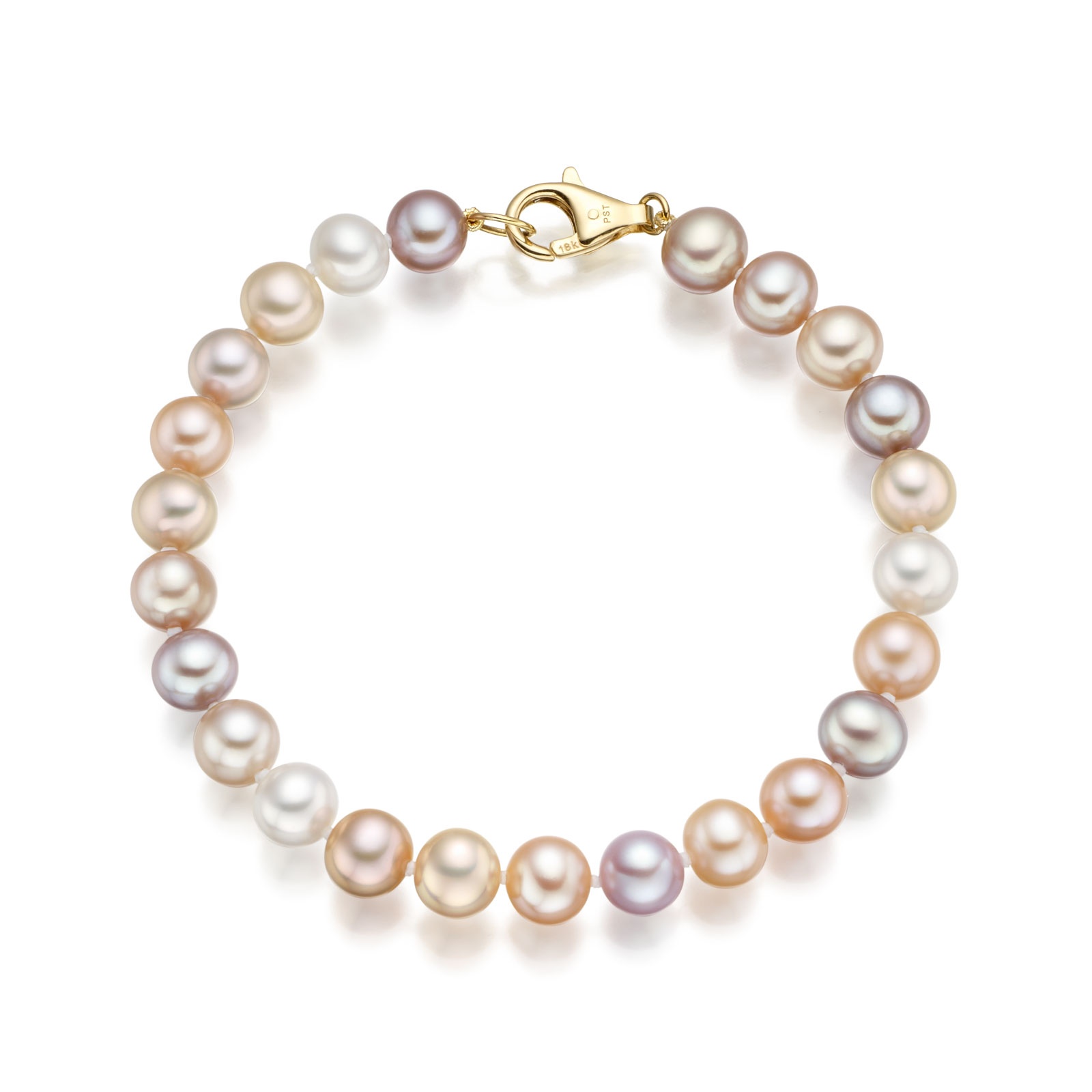 Классический браслет собран из идеально круглых жемчужин белого и розового цвета.