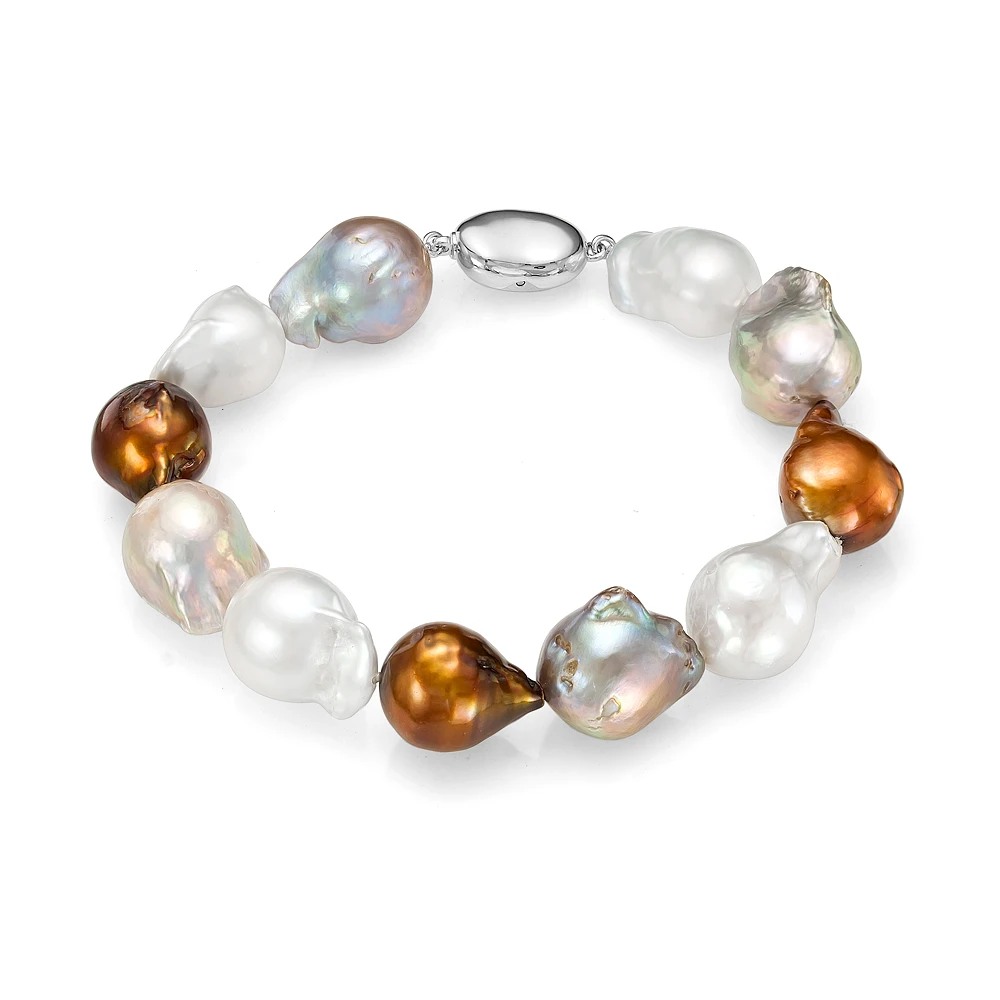 Роскошный браслет собран из речных жемчужин барочной формы.