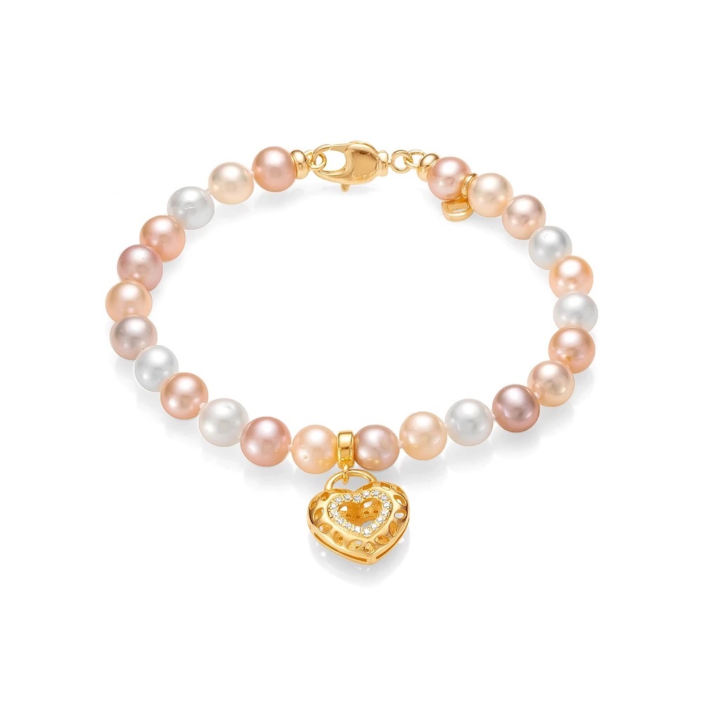 Браслет "микс" из речного круглого жемчуга 6,5-7 мм с подвеской из серебра "Сердечко", (4112)