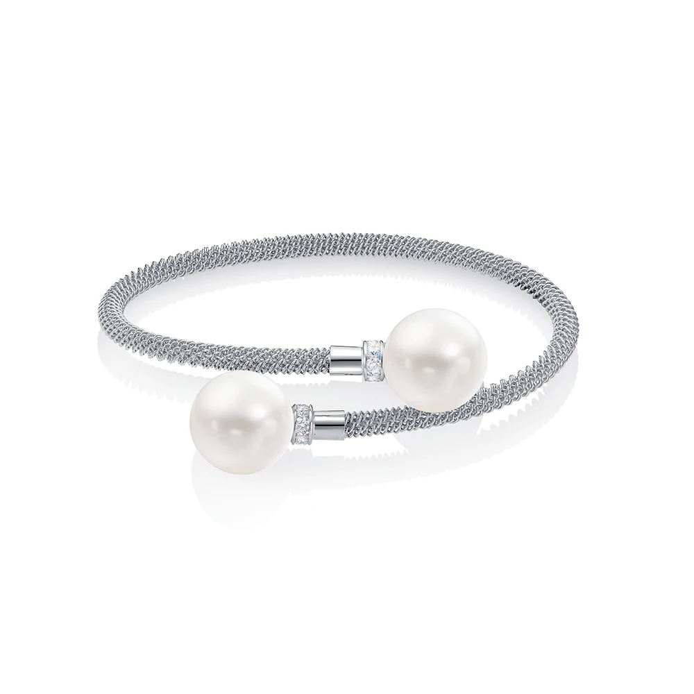 Браслет серебряный с японскими речными жемчужинами. Жемчужины 13,5-14 мм, (6224)