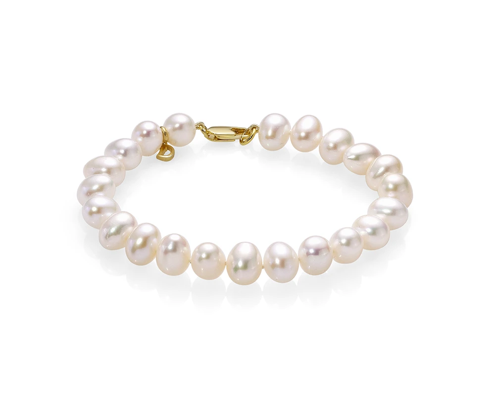 Браслет из белого овального речного жемчуга класса ААА. Жемчужины 7,5-8 мм, (6217(12900))