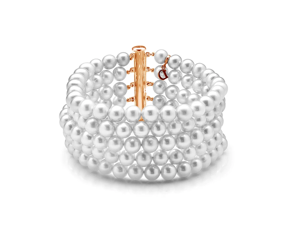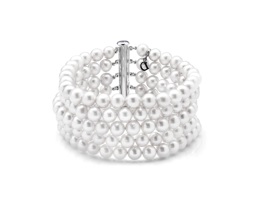 Браслет в 5 рядов из белого круглого речного жемчуга. Жемчужины 6-6,5 мм, (4375(9400))